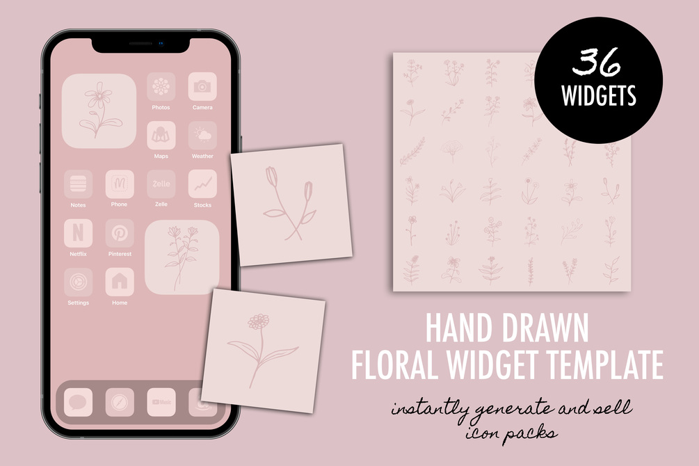You will get a Photoshop template, allowing you to bulk customize 36 iPhone Widgets and instantly export them. You can use this template to make themed icon packs that you can sell. Customers will be able to change the theme of their phone with the endless designs that you create! You must have access to Adobe Photoshop CS4+ on a desktop/laptop.